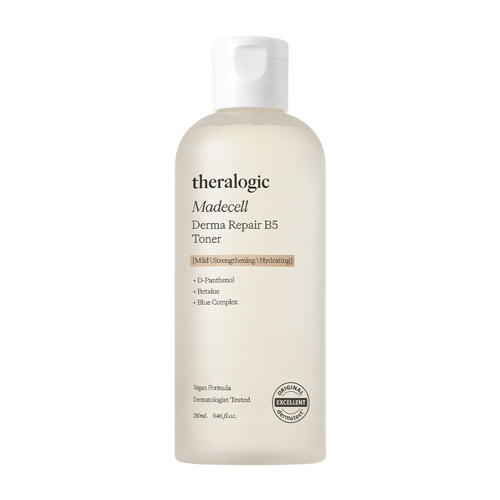 Theralogic Madecell Derma Repair B5 Toner is an advanced essence-type toner developed to repair weakened skin barriers and provide intensive inner hydration. Formulated with D-Panthenol (Pro-Vitamin B5), the toner absorbs into the skin and converts into Vitamin B5, helping reinforce moisture retention and improve barrier strength.