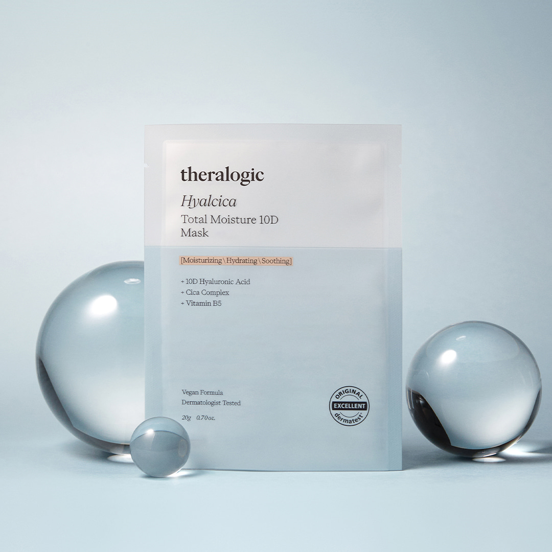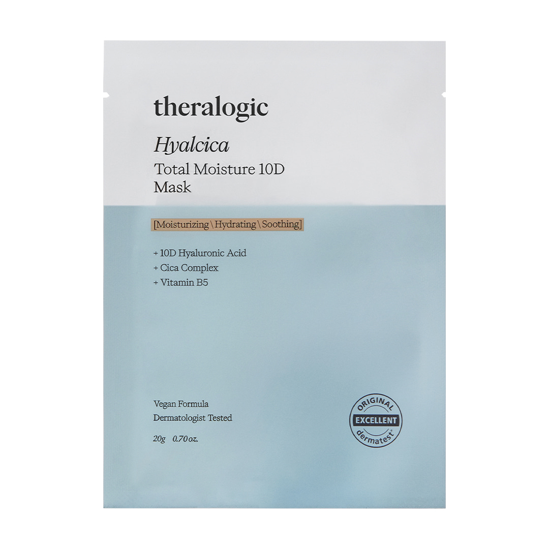 Theralogic Hyalica Total Moisture 10D Mask is a hydrating sheet mask formulated with a multi-layer hyaluronic acid complex and CICA ingredients to support intensive moisture care, skin soothing, and hydration balance. The mask adheres comfortably to deliver conditioning care for refreshed and smooth-looking skin.